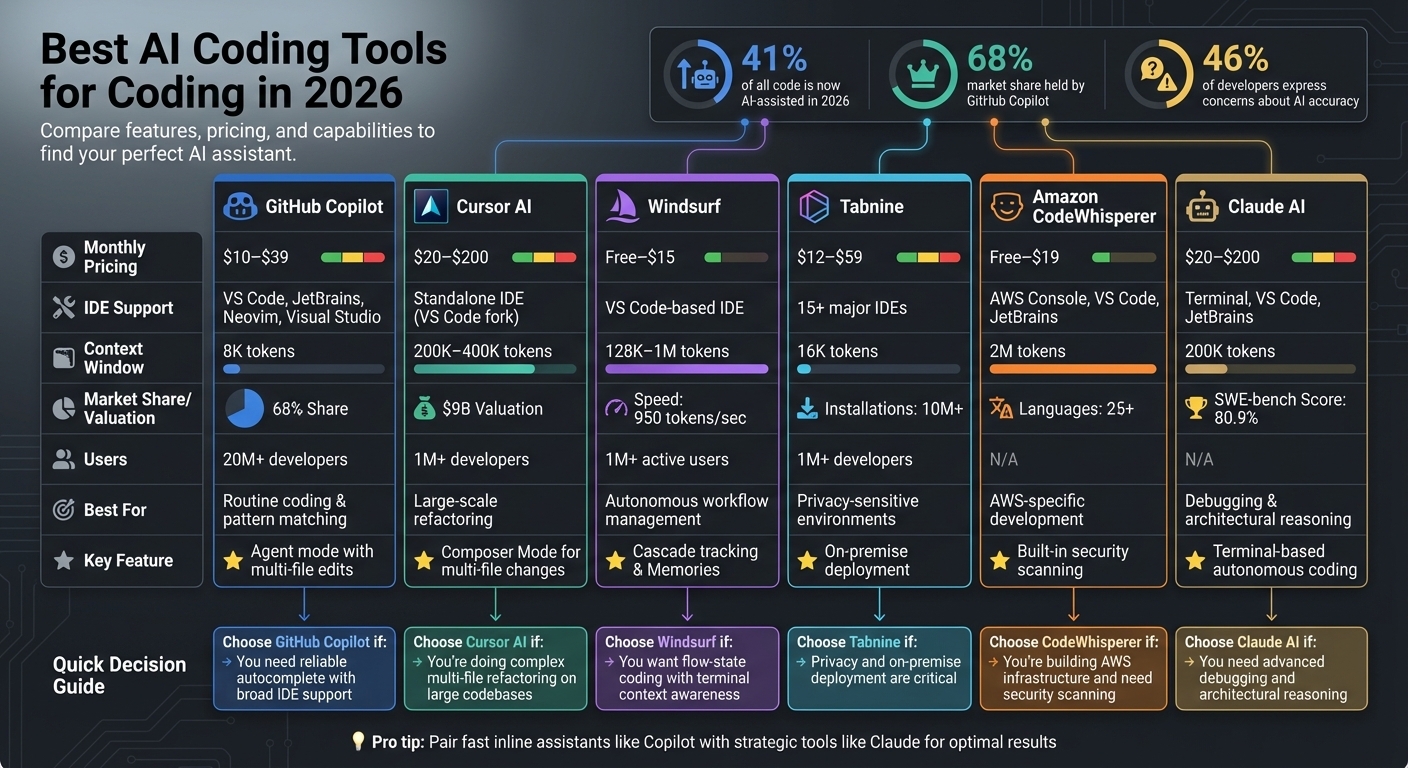Here’s a quick rundown of the top AI coding tools in 2026: