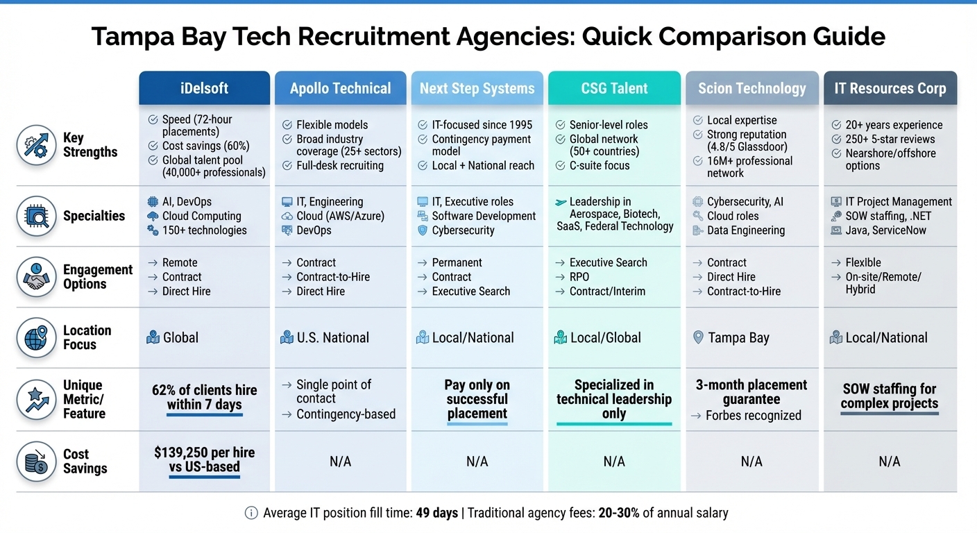 Finding the right tech talent in Tampa Bay can be a challenge, but specialized recruitment agencies make it easier for businesses to hire skilled professionals. Here's a quick look at six standout agencies and what they offer: